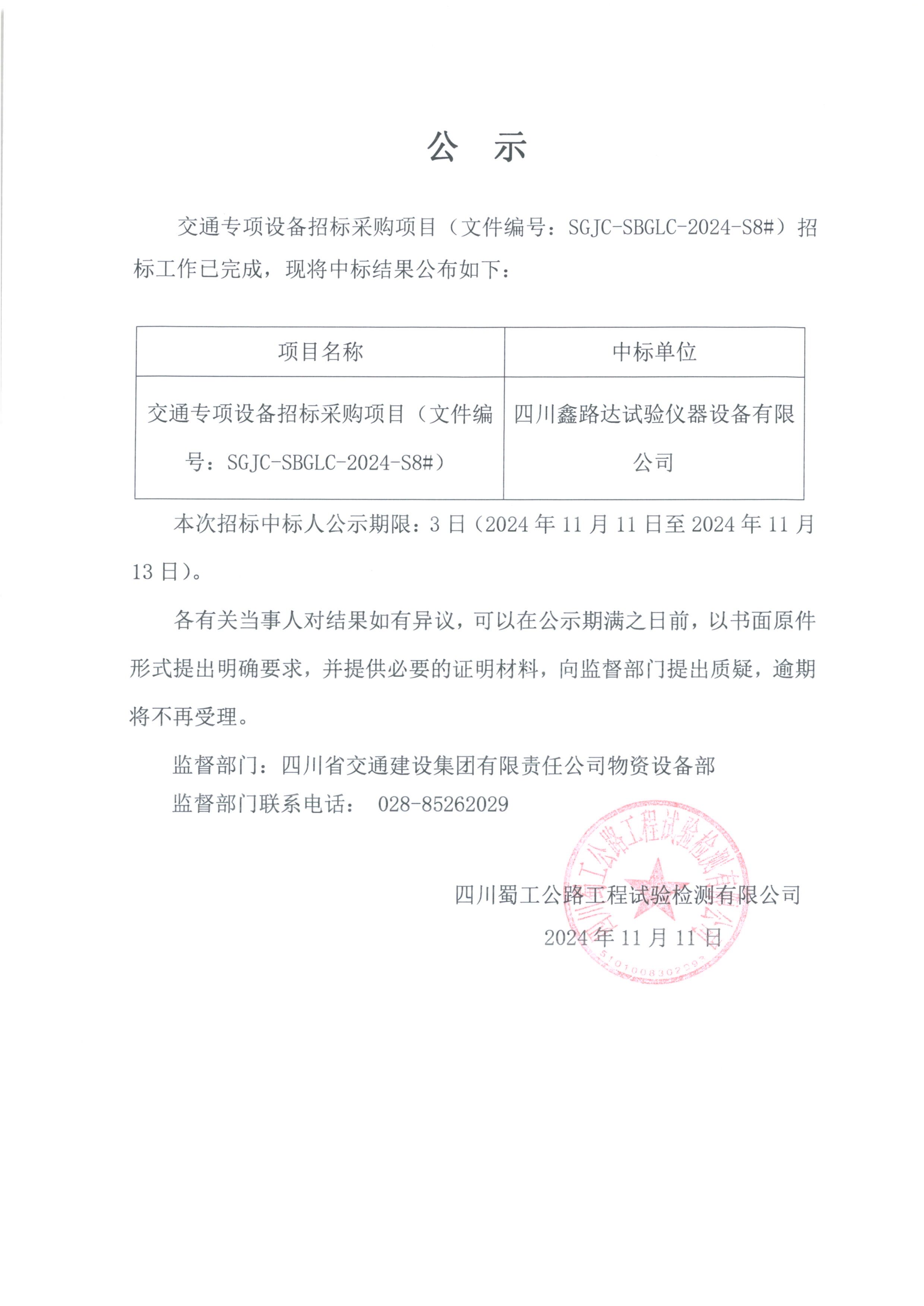 中標(biāo)候選人公示(交通專(zhuān)項(xiàng)設(shè)備(文件編號(hào):SGJC...